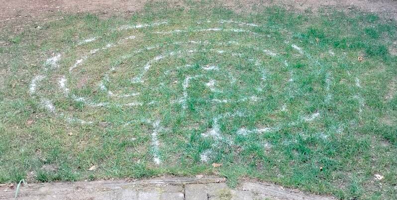 Wir haben außerdem ein Labyrinth gelegt und am Abend, am knisternden Feuer, meinen Heilungsgürtel und meinen Kraftstab geweiht.